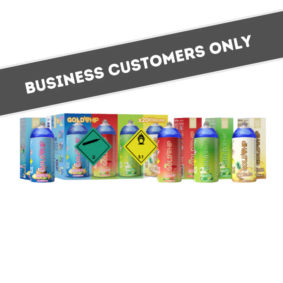 The new Aluminium GoldWhip Mini Flavoured Nitrous Oxide Mini Tanks are filled with 200g of premium food grade flavoured Nitrous Oxide. Perfect for any professional chef, mixologist and home cook to create a variety of decadent recipes in the comfort of their home or professional kitchen.